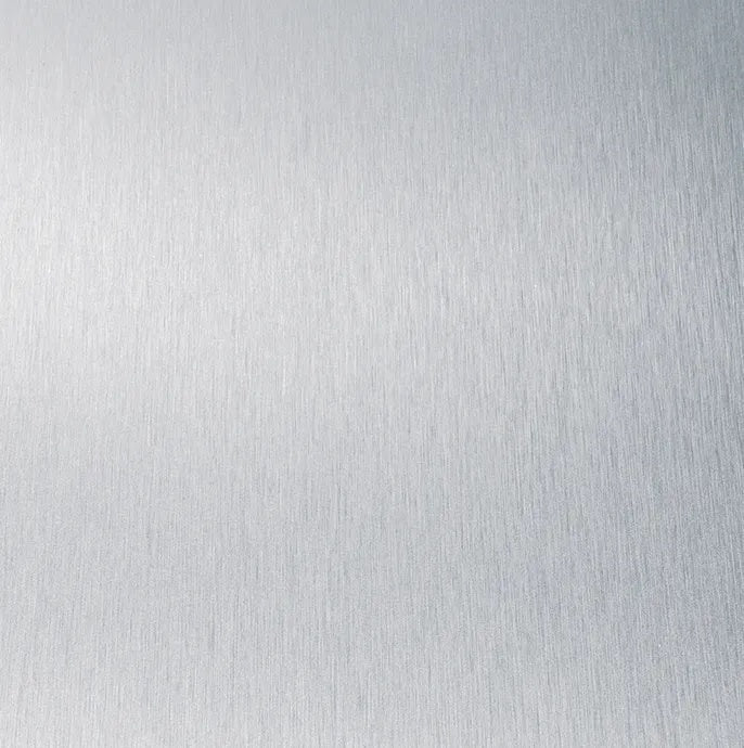 Grade 84 DecoMetal Metal Laminate in Brushed Stainless Steel sheet or Corrugated Aluminum with a phenolic back. The phenolic back prevents creasing and allows for improved adhesion to substrates. Engineered for vertical and light-duty horizontal applications. .030" (0.8 MM).